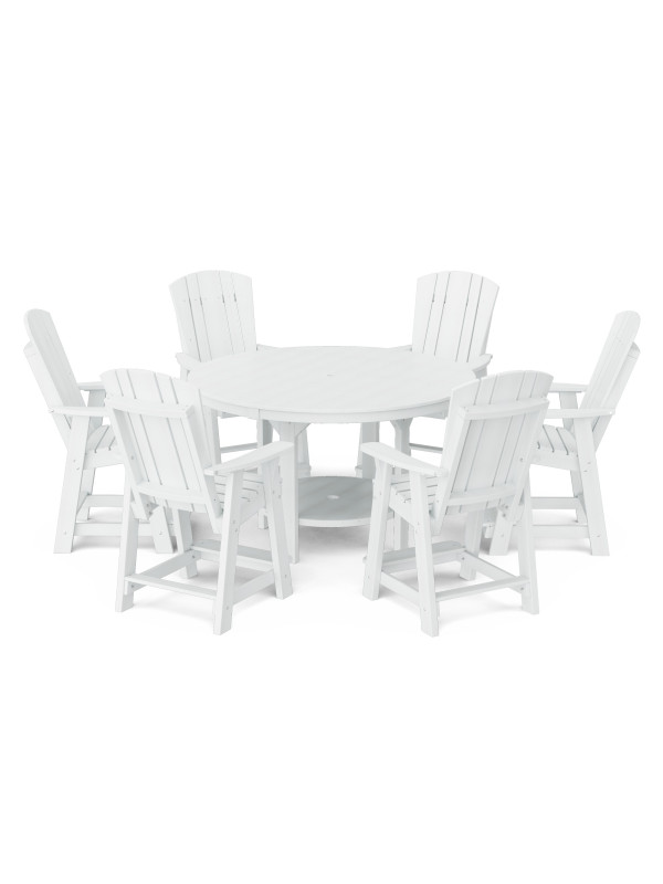 Share a toast or two with the Heritage 60” 7-Piece Pub Table Set, crafted for moments that matter. This set includes (1) LCC-178 Heritage 60” Pub Table and (6) LCC-150 Heritage Balcony Chairs. The pub table provides plenty of space for drinks and appetizers while the balcony chairs offer ultimate comfort and style. Constructed from heavy-duty poly lumber, it is resistant to fading, cracking, splitting, and harsh weather conditions. Host a casual brunch or a quiet sunset dinner with this durable set.