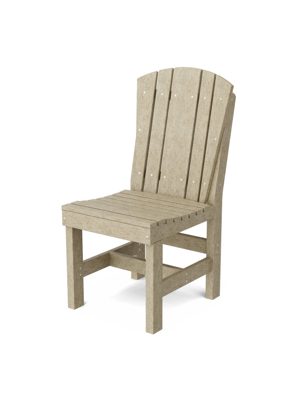 The Heritage Dining Chair gives you and your guests the maximum comfort you deserve while dining outdoors. Subtle contours and a gently sloping backrest provide extra support throughout meals. Constructed from all-weather poly lumber, it has a rustic, natural wood appearance that complements any outdoor setting. UV-inhibitors integrated into the material ensure the colors stay vibrant year after year. Pair these chairs with any of our Heritage dining tables for the perfect outdoor dining experience.