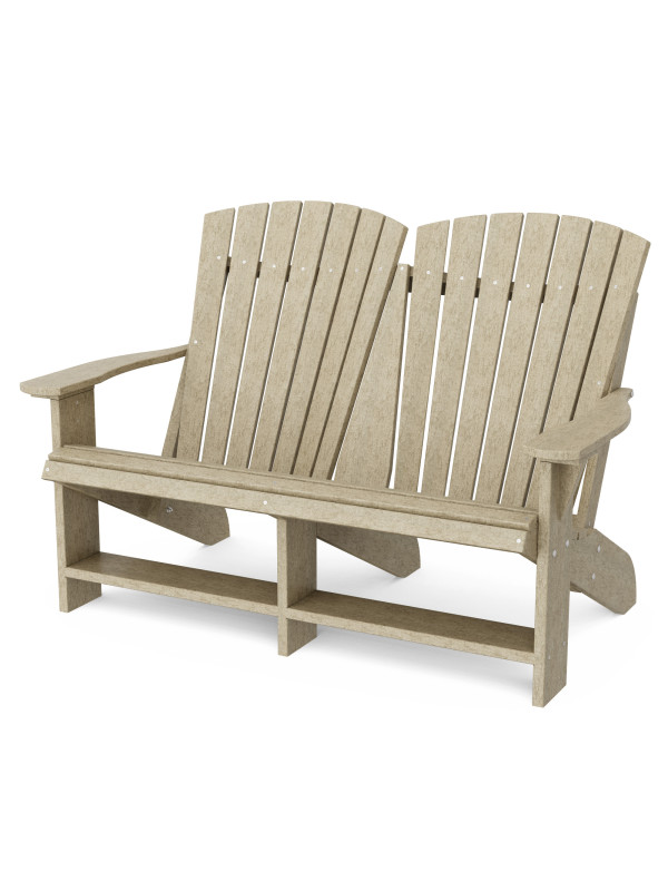 Create the perfect spot for two with this inviting Heritage Double Adirondack. With its expertly contoured design and gently sloping backrest, it’s the perfect setting for afternoon chats and shared laughter as the sun sets. Built from durable high-density polyethylene (HDPE), it can withstand a variety of environmental stressors. Its vibrant colors are resistant to fading, ensuring it remains as radiant as your memories over the years. Whether placed by the lakeside or in your backyard, this double Adirondack is a testament to timeless design and enduring quality.