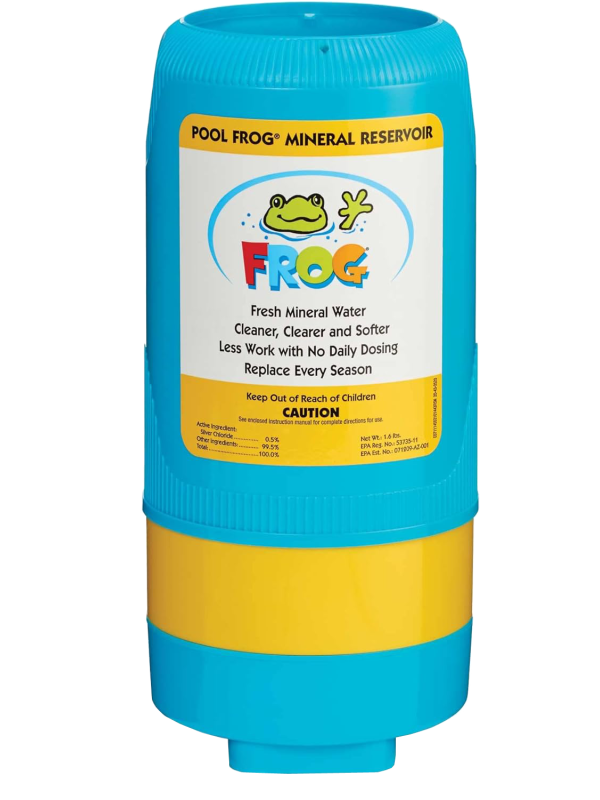 Make your pool your happy place with Pool FROG Mineral Reservoir. Happiness is spending more time in your pool enjoying crystal clear, silky soft water without handling or measuring pool chemicals. The Pool FROG system creates Fresh Mineral Water®∞ that kills bacteria 2 ways, with FROG minerals and a small amount of chlorine, requires no daily dosing, eliminates smelly chlorine odors and invites loads of fun. Prefilled cartridges make it easy to take care of. Here’s to more happiness!