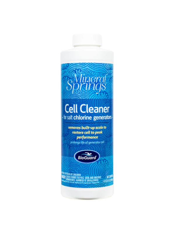 All chlorine generation cells need to be chemically cleaned periodically. Mineral Springs® Cell Cleaner has been developed to remove calcium build up on cells. It is highly effective on calcium carbonate scale, calcium phosphate scale, and calcium sulfate scale when used as directed. All cells should be cleaned a minimum of once a year at the beginning of the season. BioGuard® recommends visually inspecting your cell for scale every 2 months as more frequent cleaning may be needed. Review your chlorine generation system’s owners manual for additional information.