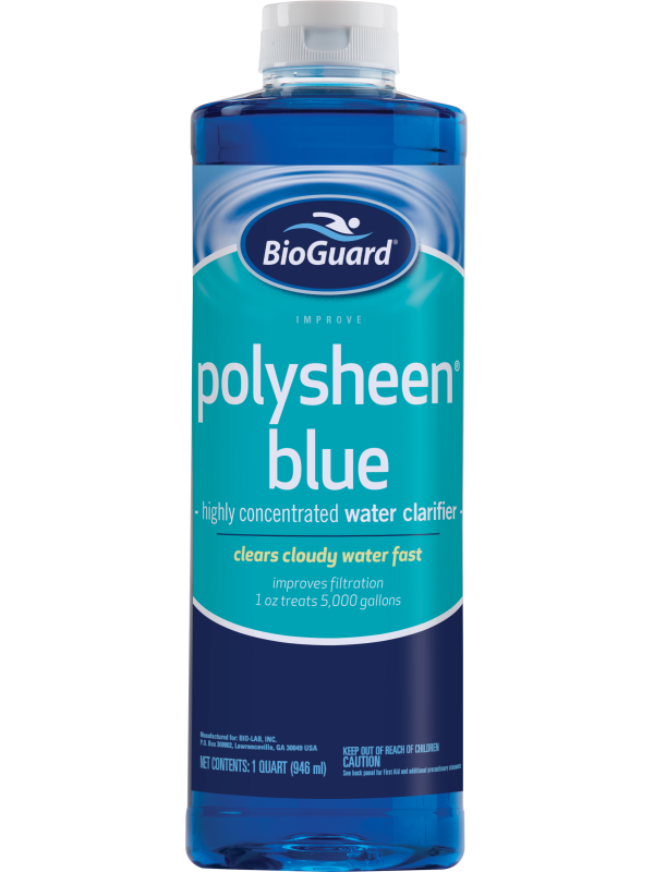 BioGuard® Polysheen® Blue is a highly concentrated water clarifier that clears cloudy water fast by combining small particles into larger ones that can be easily removed by the filter. And because Polysheen® Blue requires no diluting, it not only makes water beautifully clear, but also saves you time.