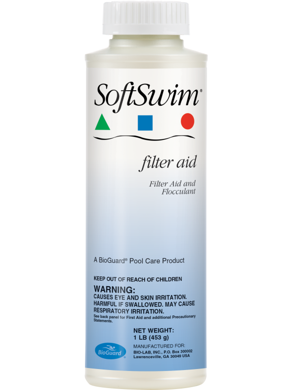 SoftSwim® Filter Aid and Flocculant can be used as a filter aid, to help the filter remove smaller particles. It can also be used as a flocculant to sink larger particles to the bottom, where they can be vacuumed from the pool.